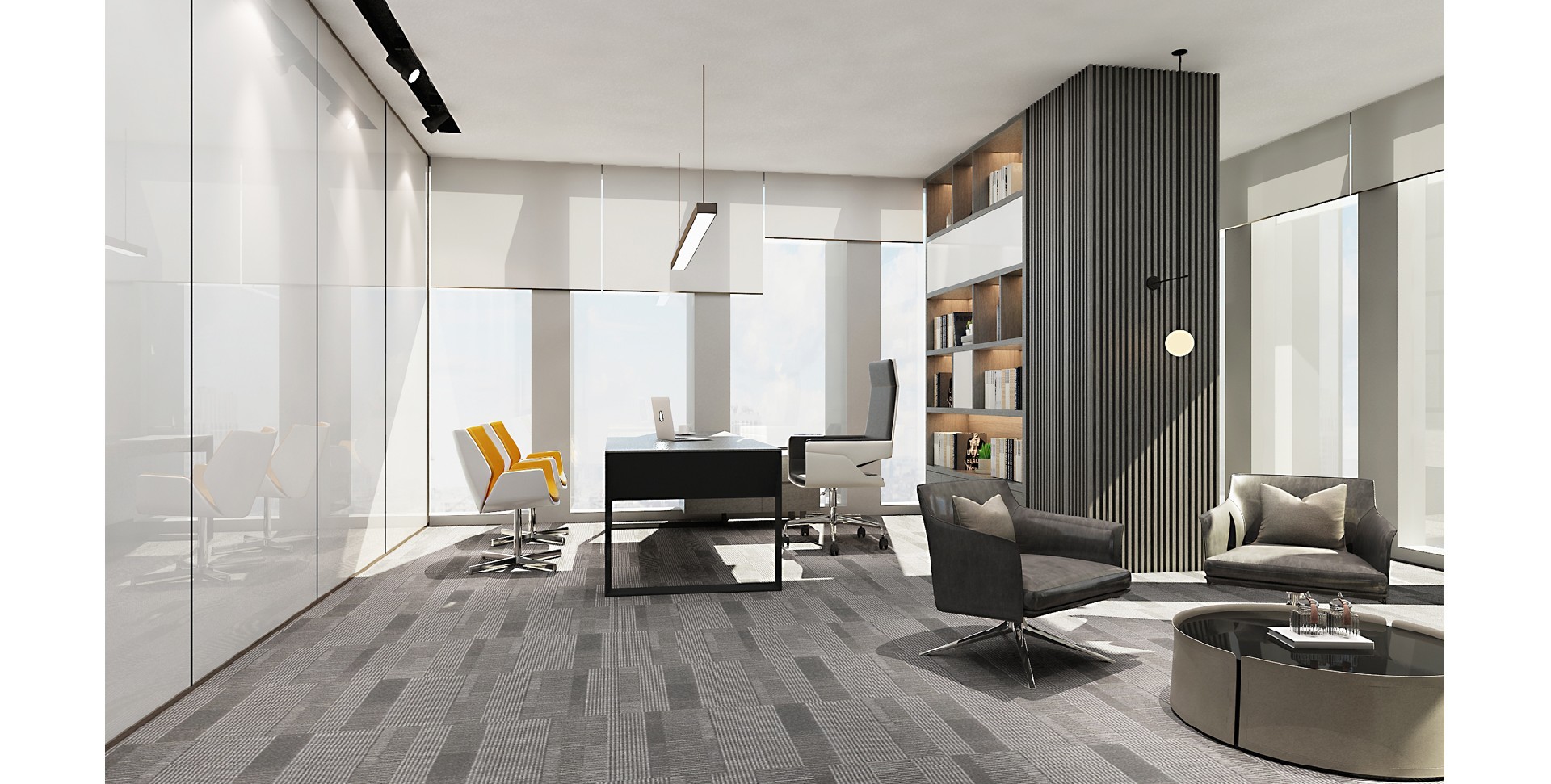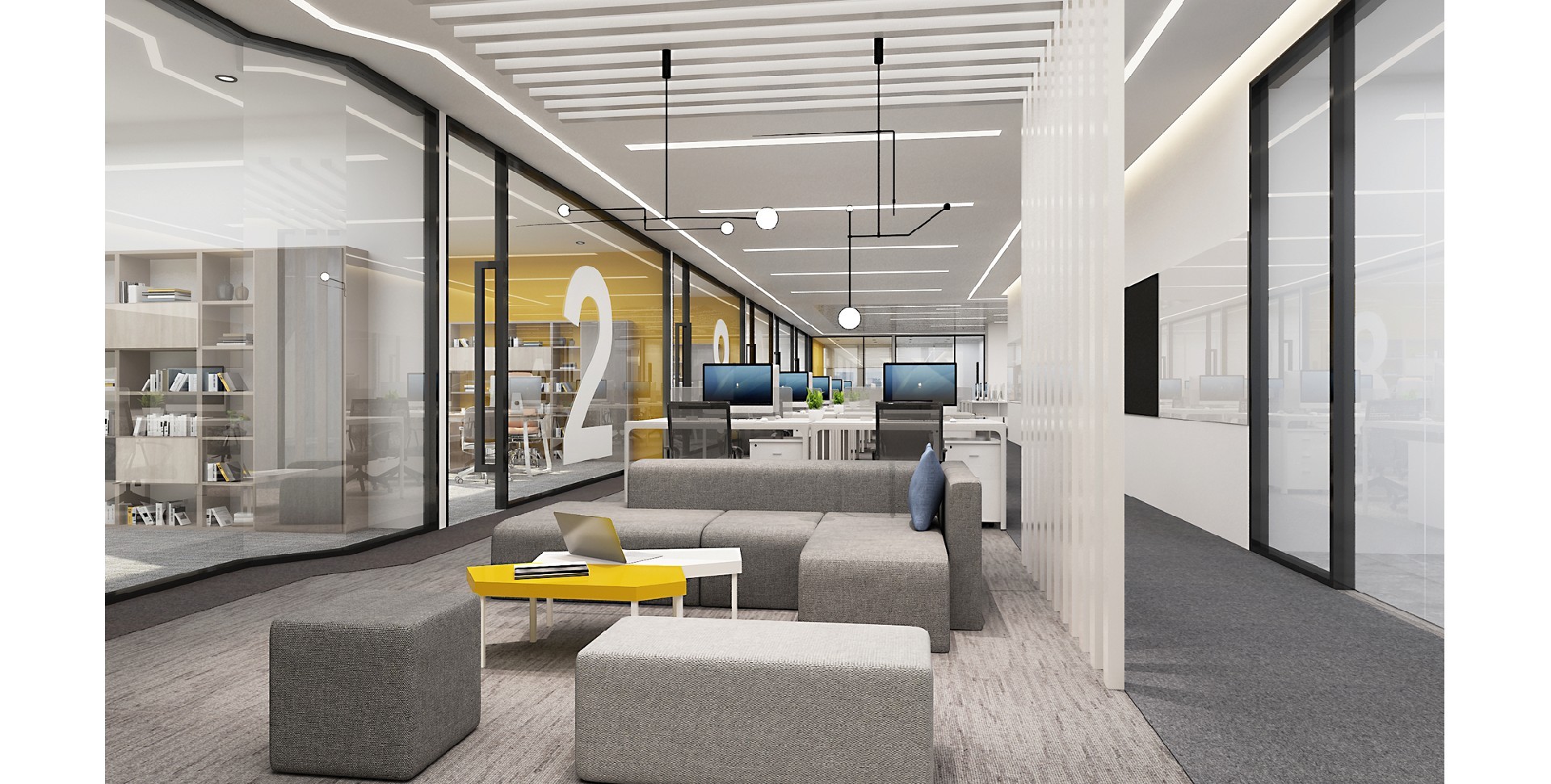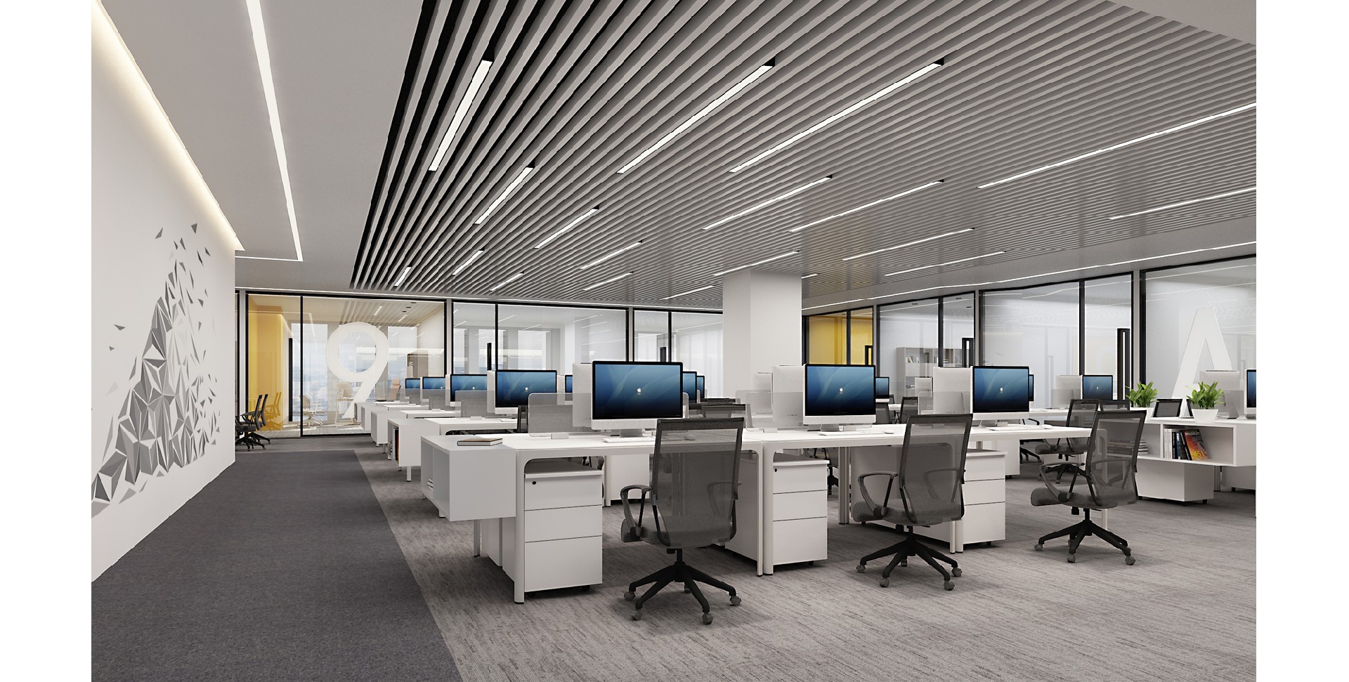 The design emphasizes the combination of technology and humanization, creating an efficient and comfortable office space through simple lines and modern decorative elements. Create an efficient and comfortable...