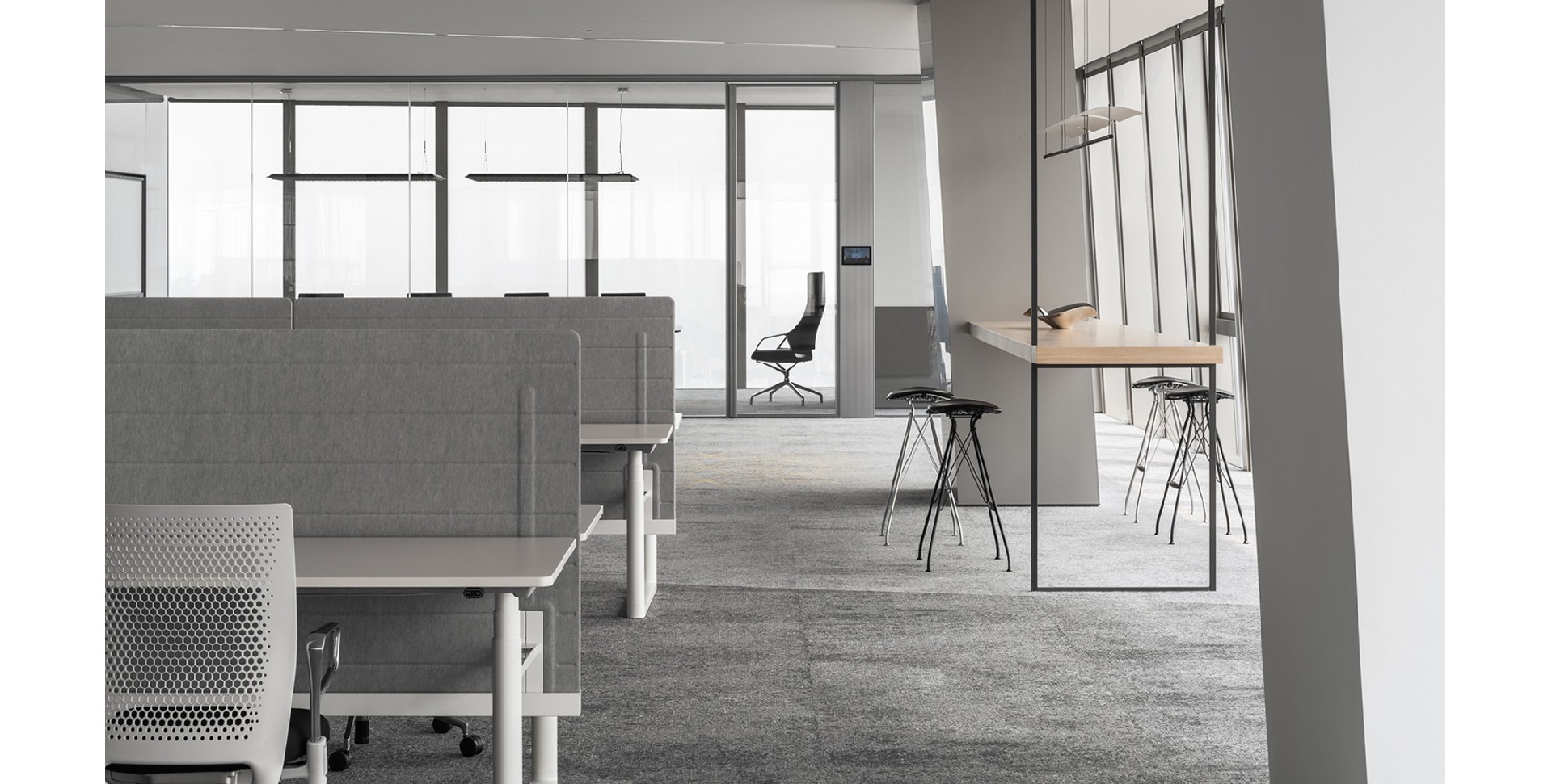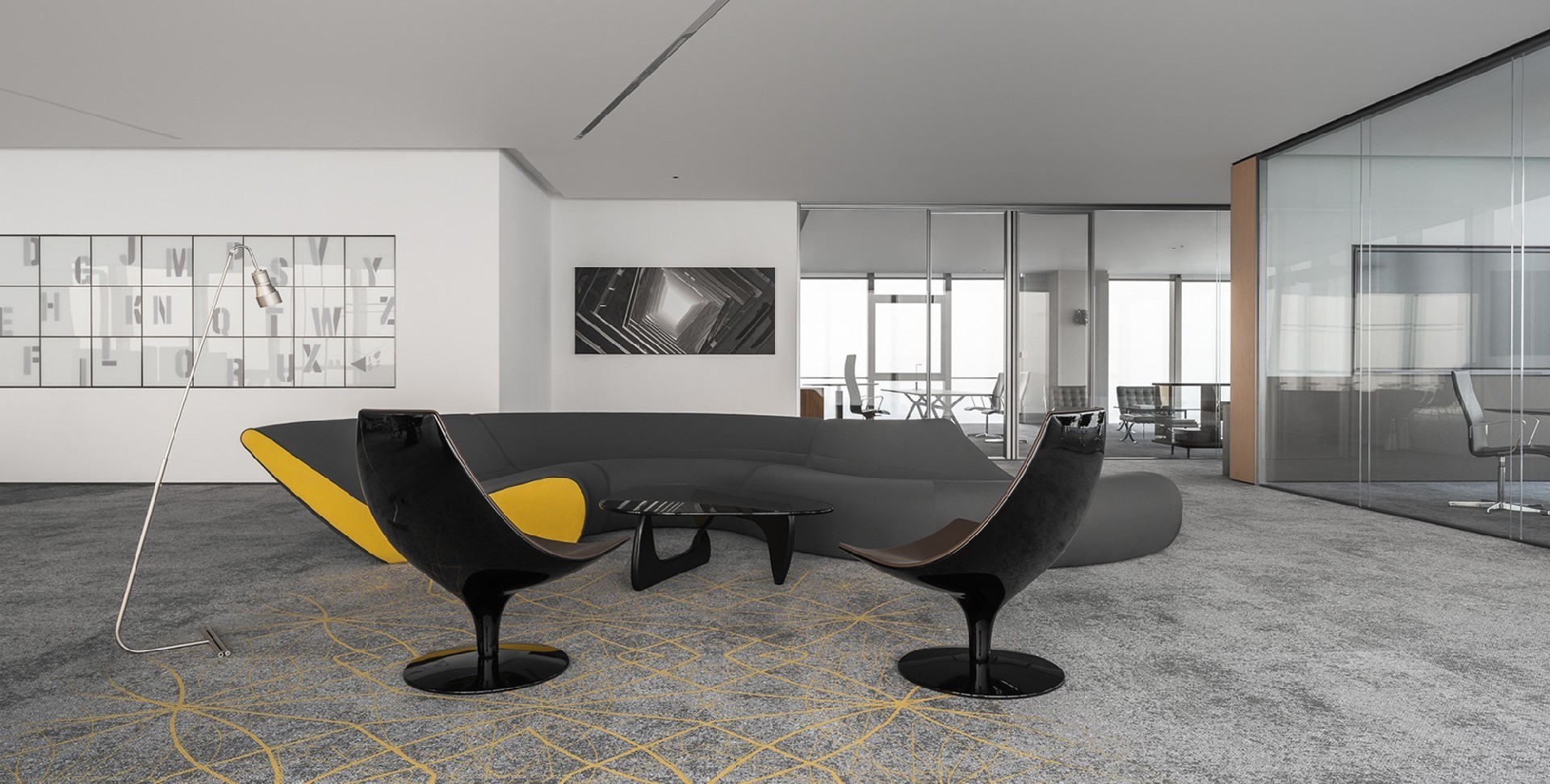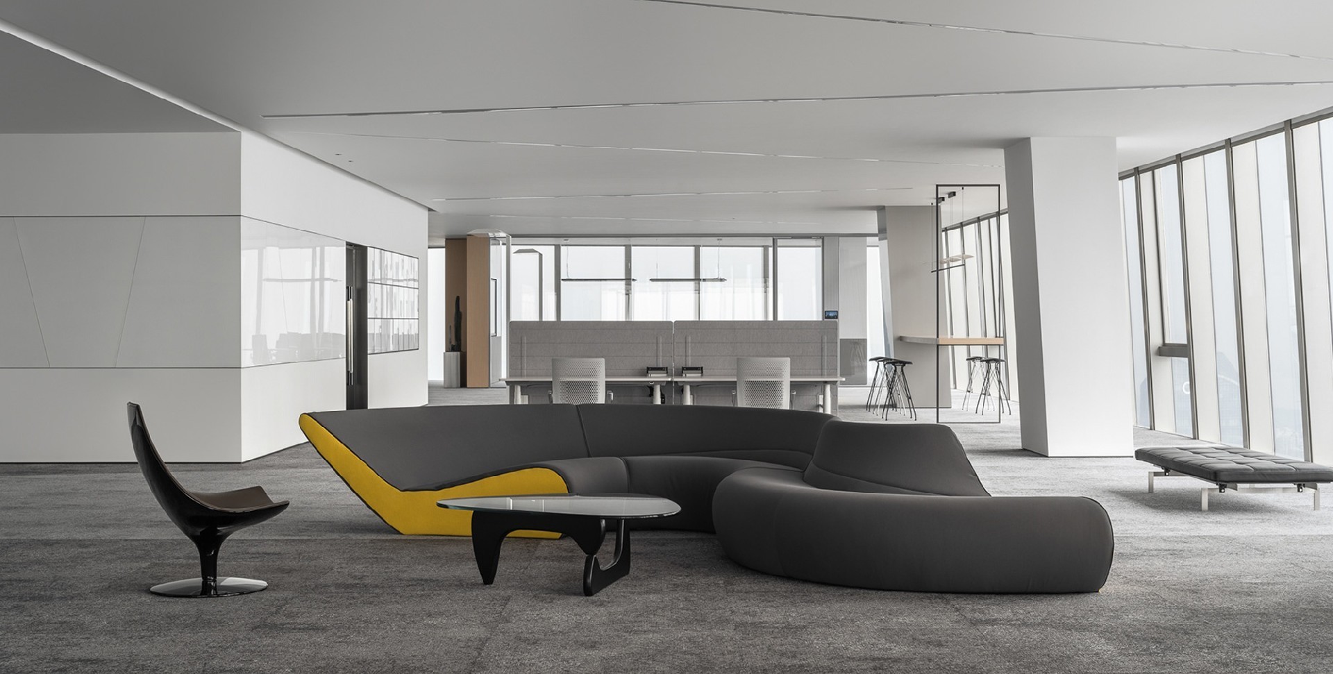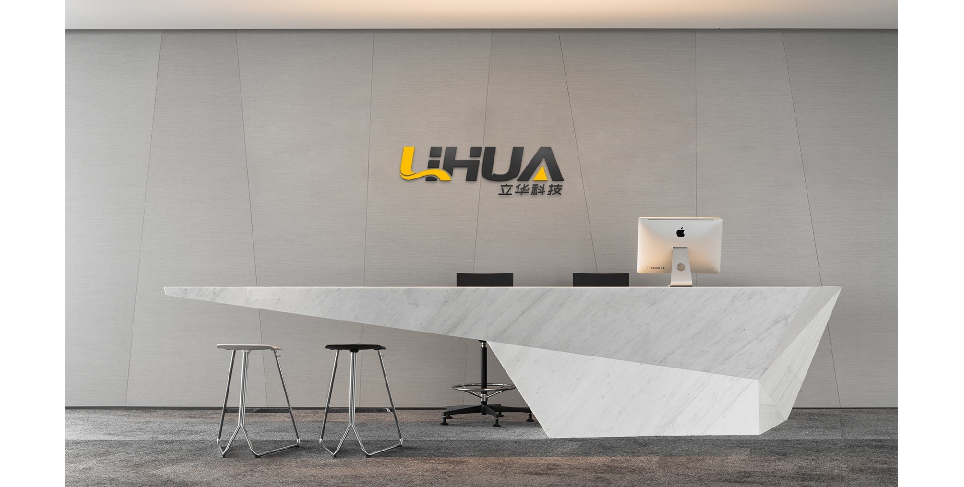 The office design of Lihua Technology combines the simplicity of modern design with some artistic elements. Grey tone with black and yellow accents. The main color tone is gray to create a calm atmosphere, while black...