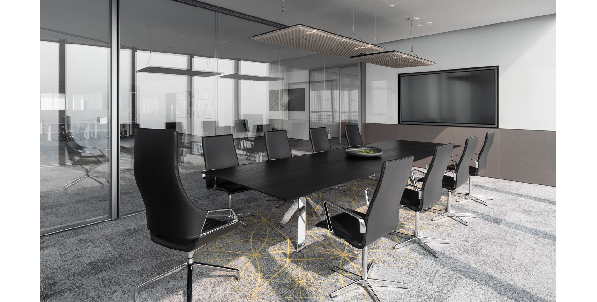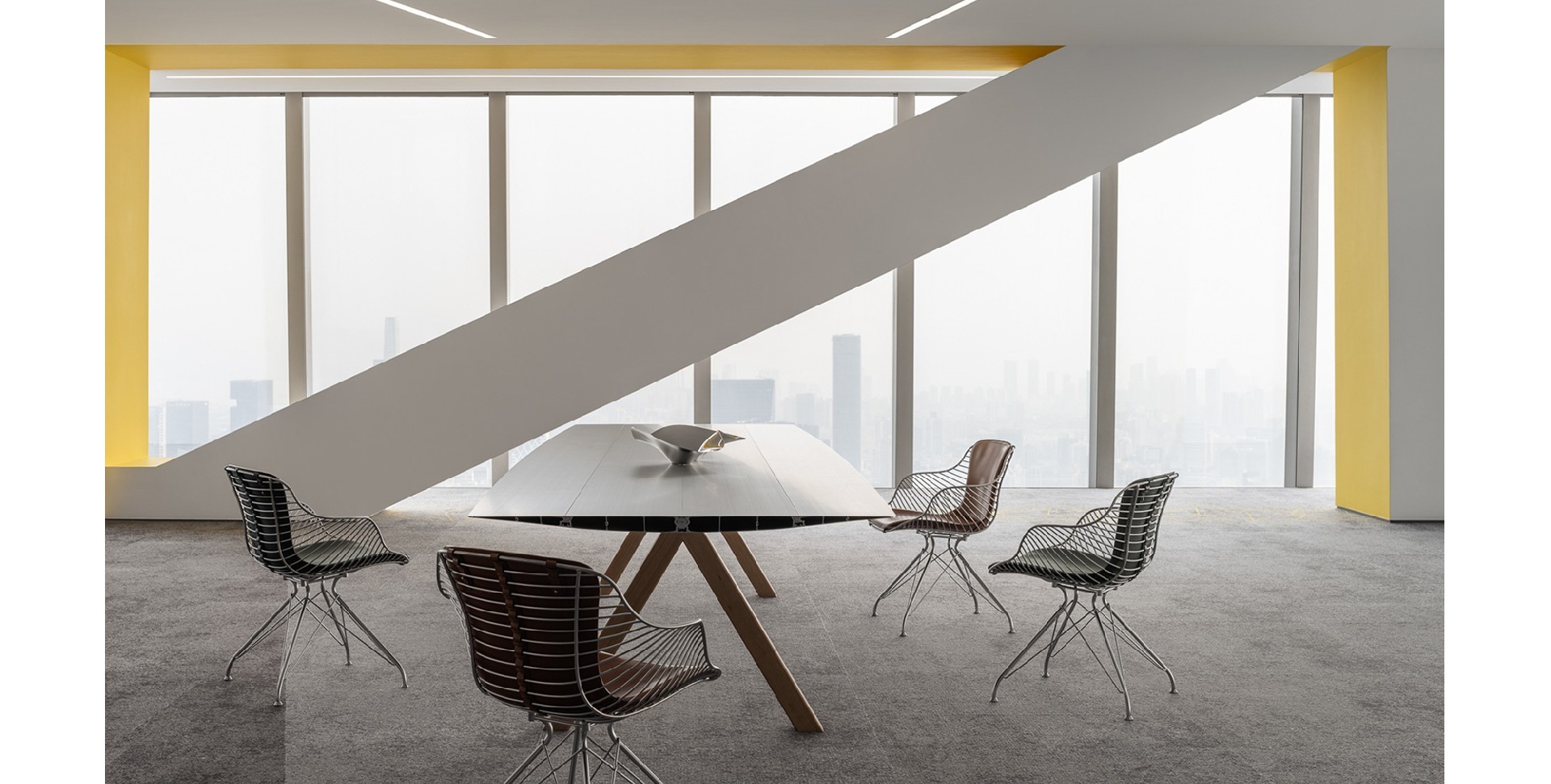 立华科技办公室设计结合了现代设计的简洁与部分艺术元素。灰色基调,黑色与黄色点缀。以灰色为主色调营造沉稳氛围,黑色和黄色则带来活跃元素。在细节处理上非常考究,体现了设计师的匠心独运。