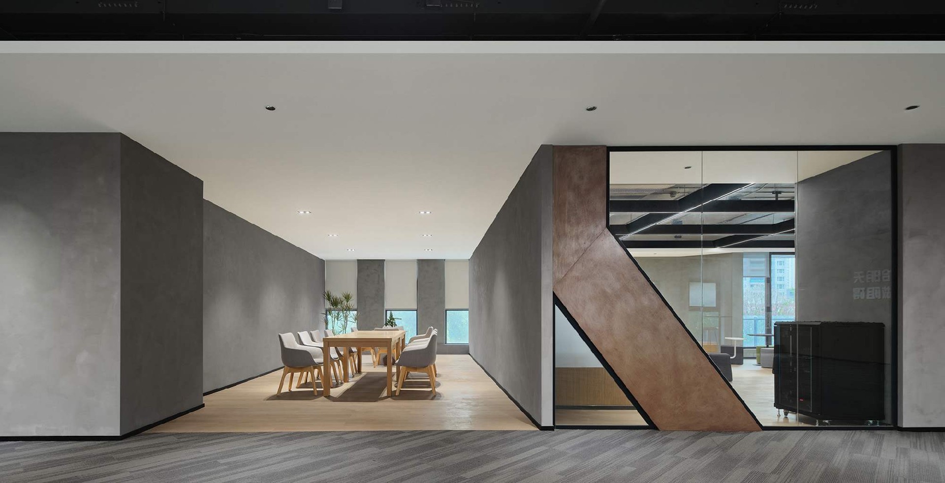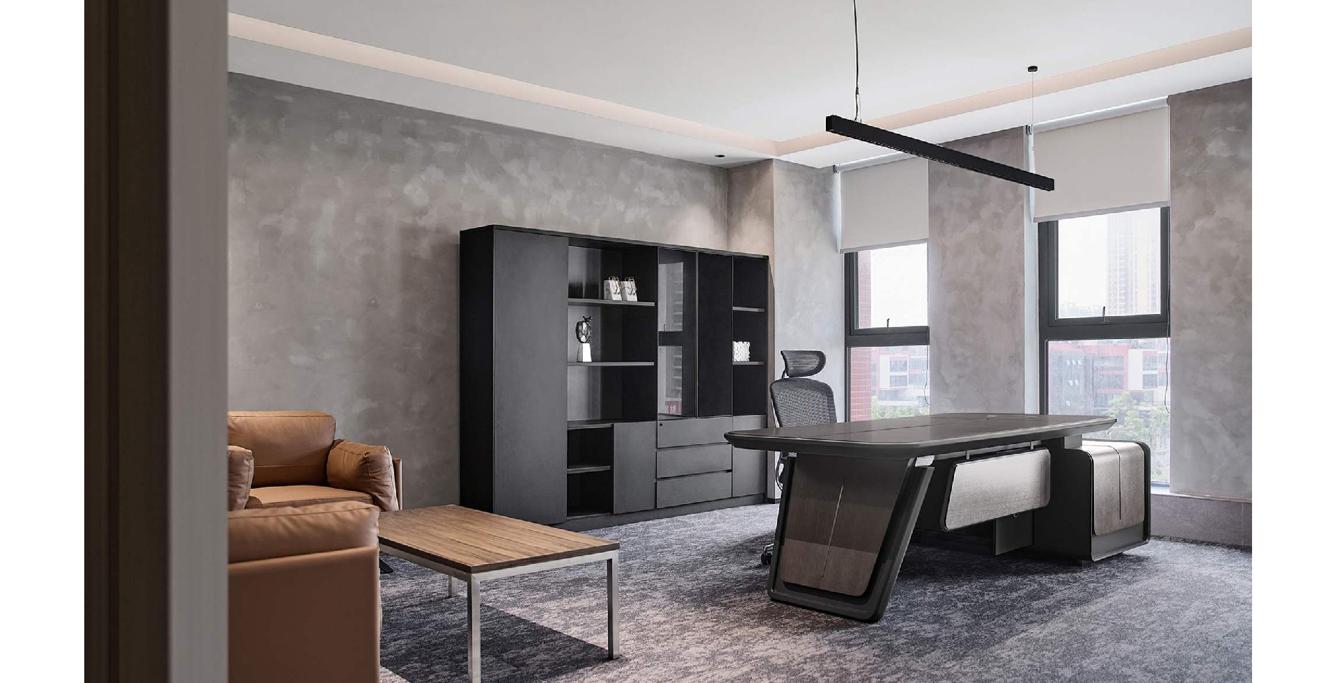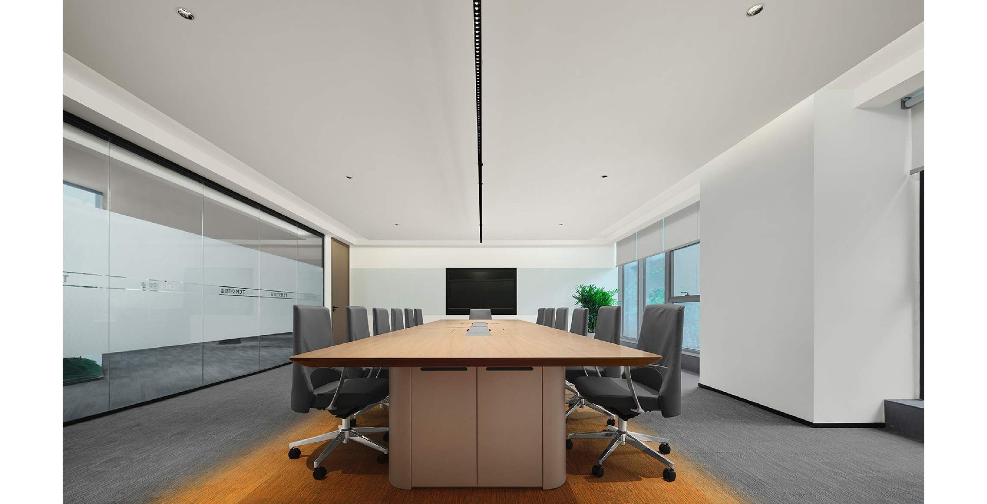 蓝灰配色轨道交通办公室,沉稳大气,科技感十足,提升空间效率,营造专业氛围,助力企业高效运行。