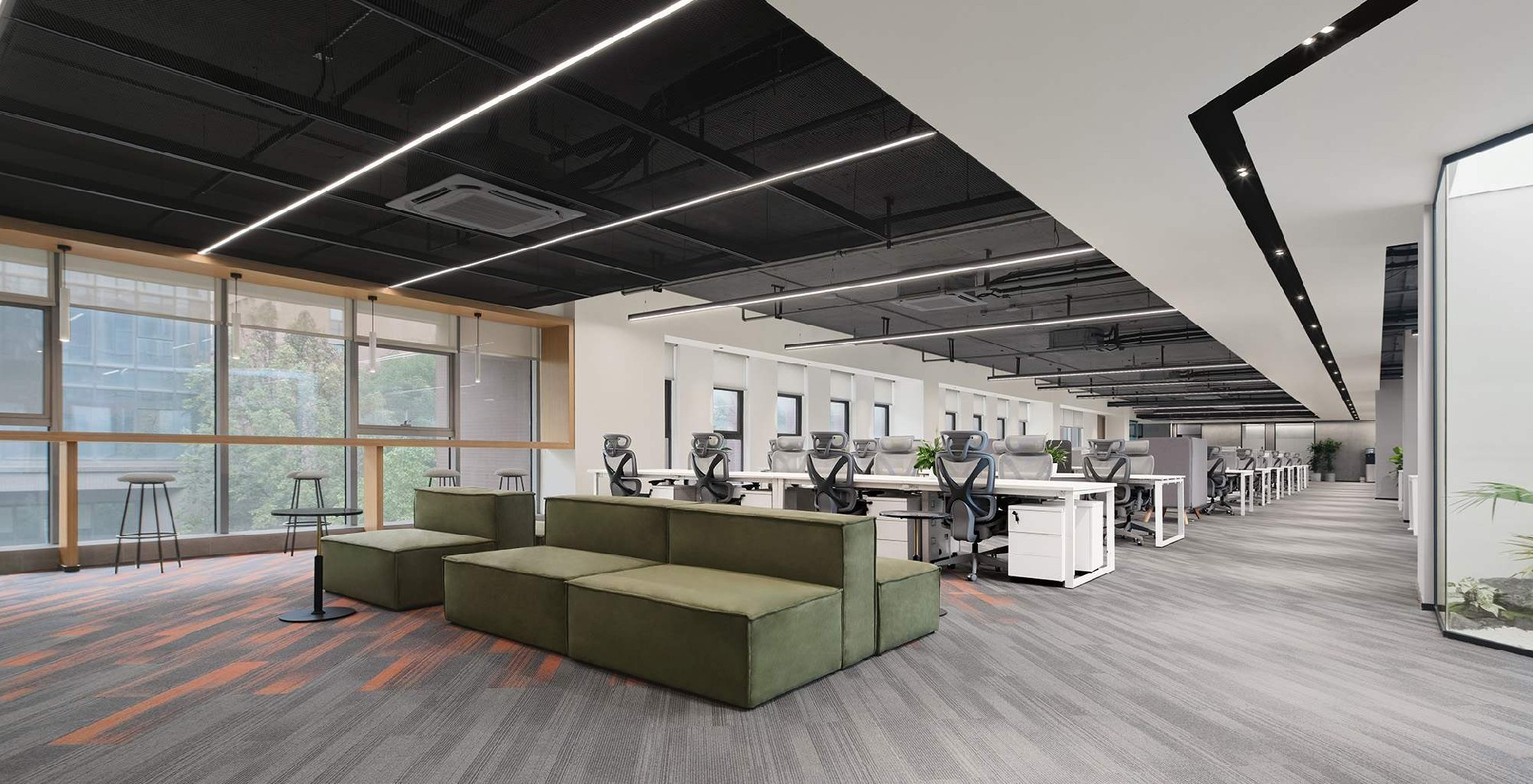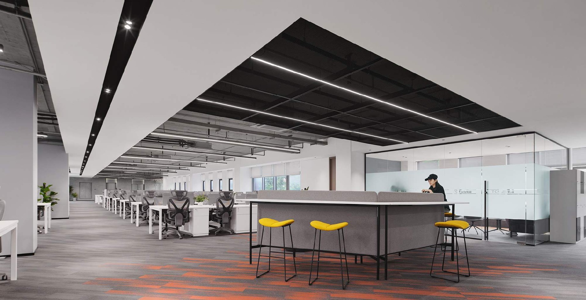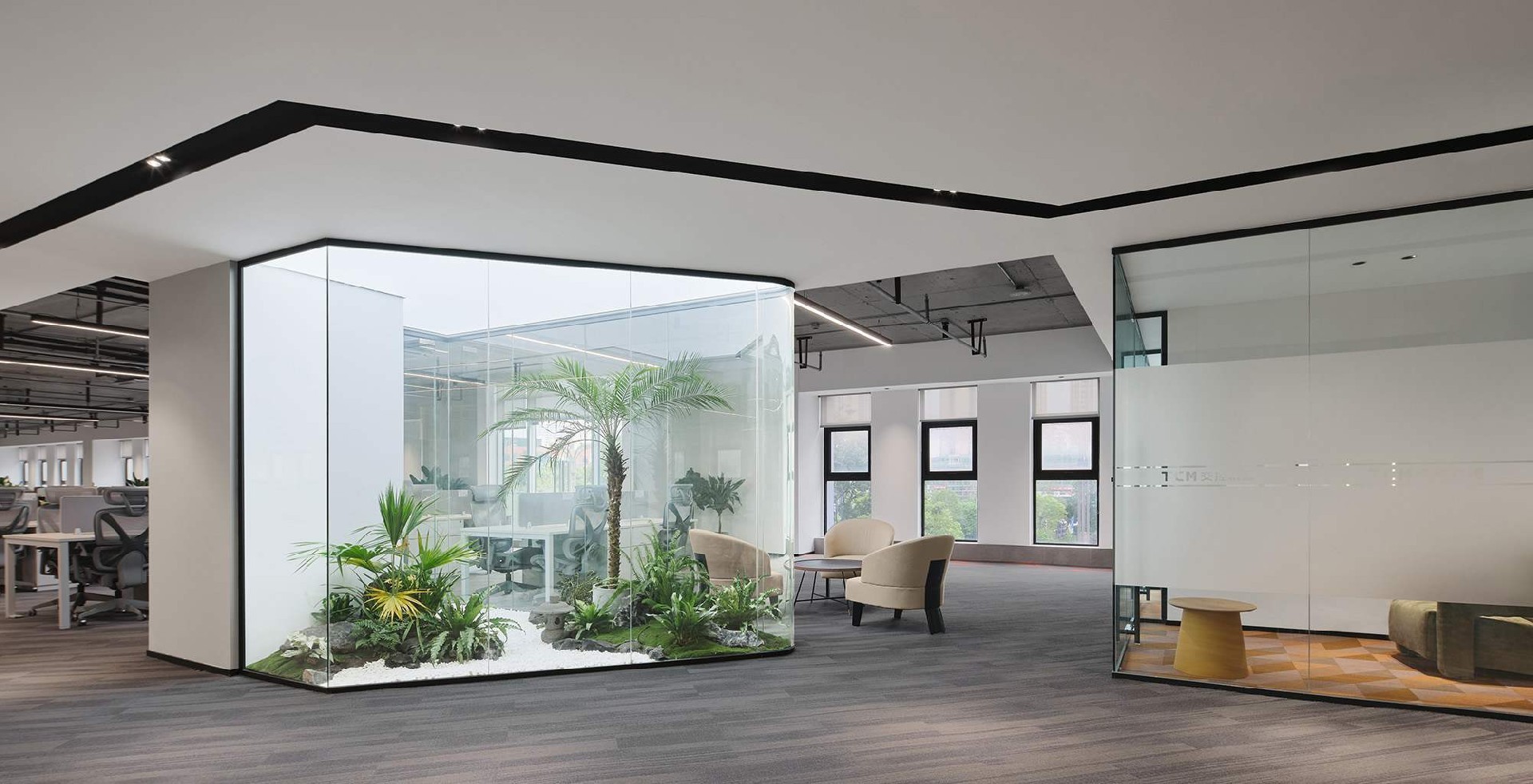 蓝灰配色轨道交通办公室,沉稳大气,科技感十足,提升空间效率,营造专业氛围,助力企业高效运行。
