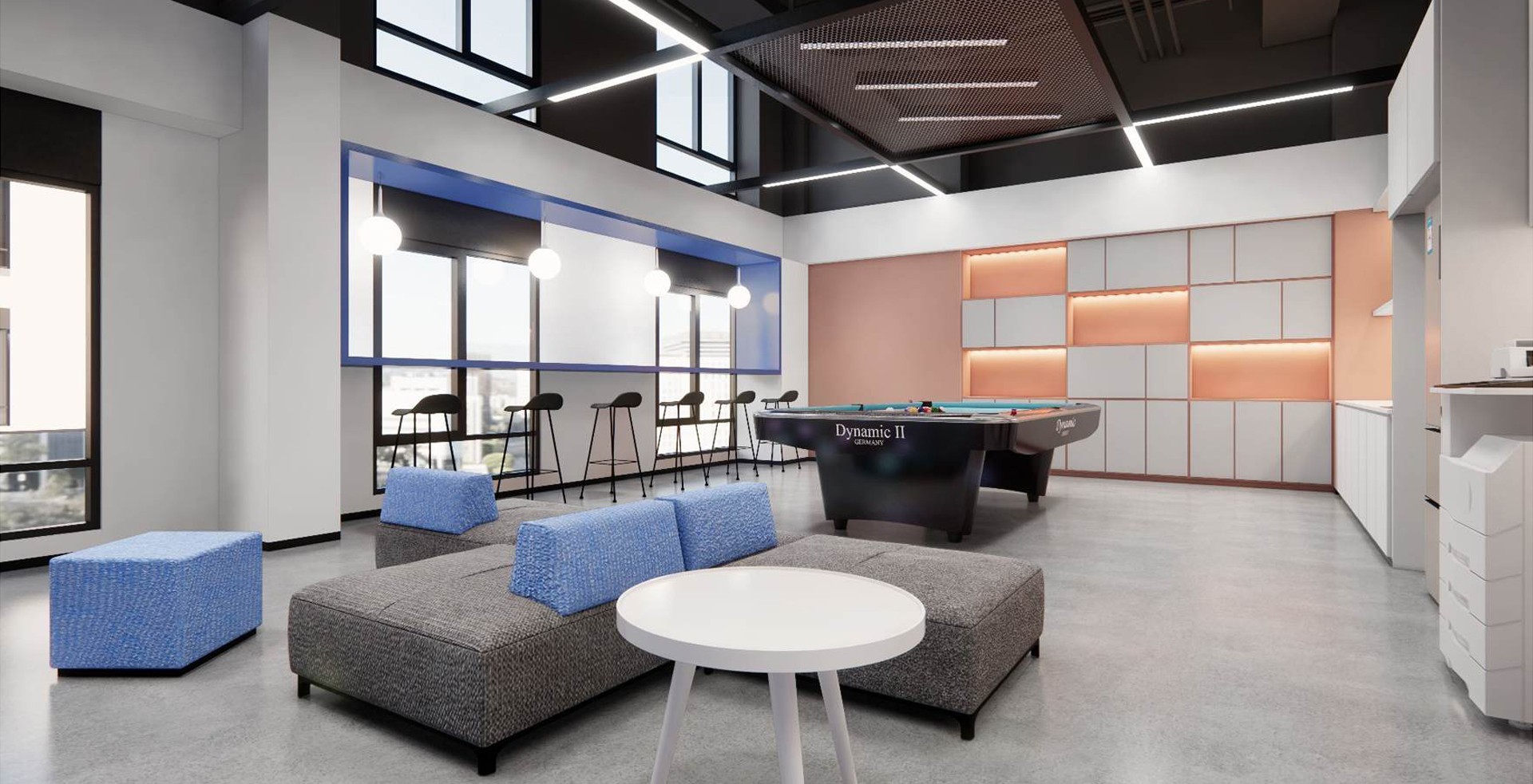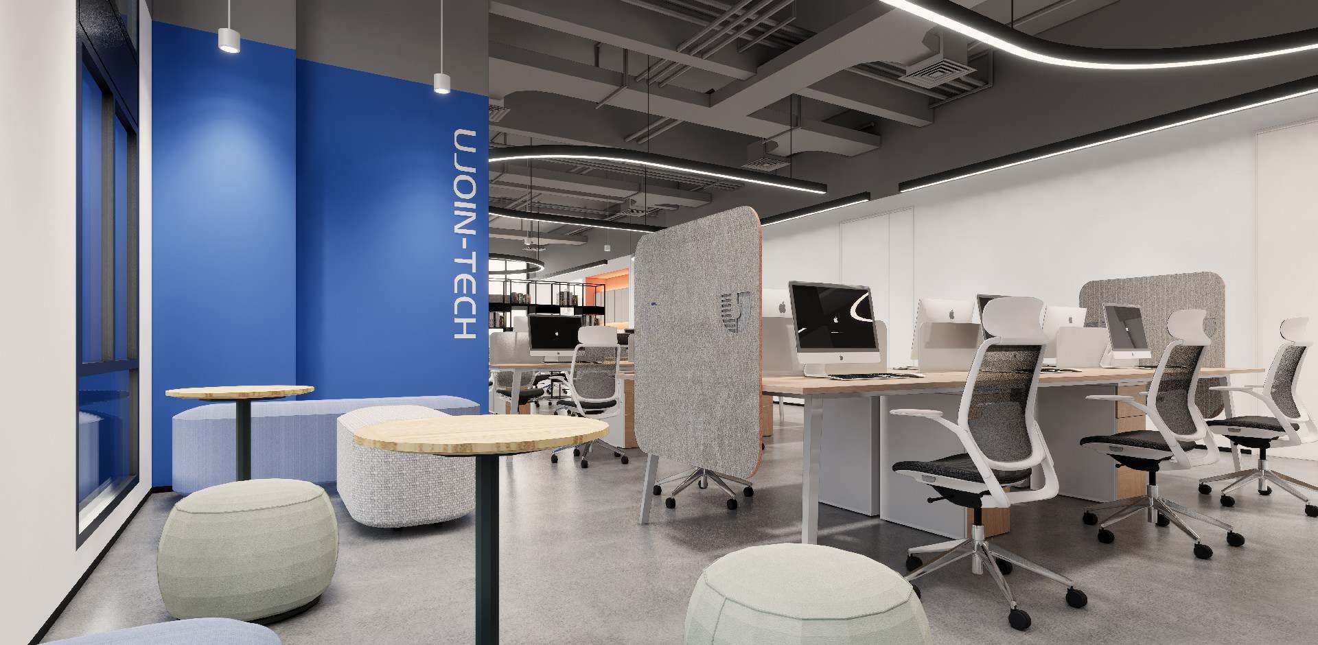 友机技术办公室设计装修的空间布局合理,色彩明亮,既保证了工作的高效性,又营造了轻松愉悦的工作氛围。设计细节处处体现科技感,彰显公司行业特色。