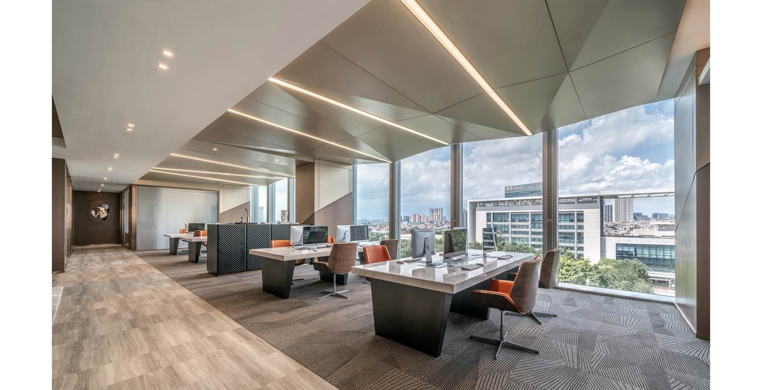 橙色为主的办公室装修设计,充满活力与创意。墙面采用柔和的橙色调,搭配现代简约家具,营造出温馨而不失专业的氛围。细节之处点缀绿植,增添生机,打造出一个既舒适又高效的工作环境。
