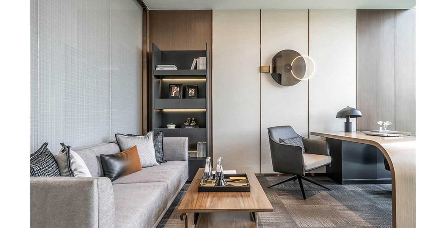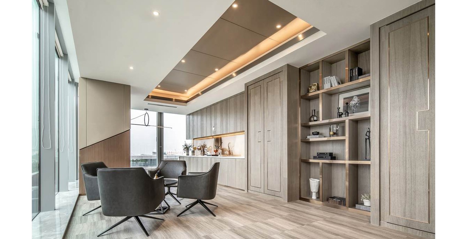 furniture, creating a warm yet professional atmosphere. Decorate the details