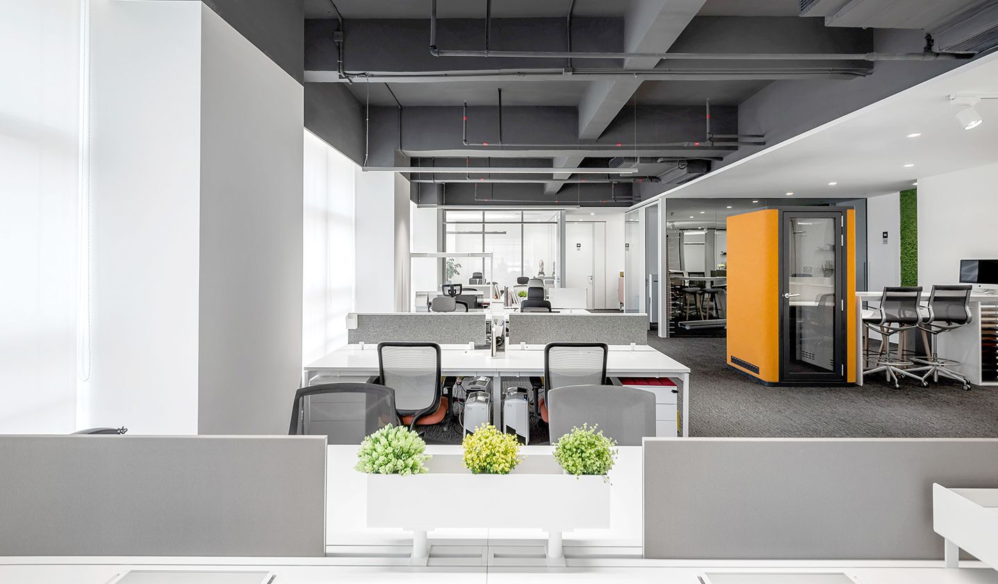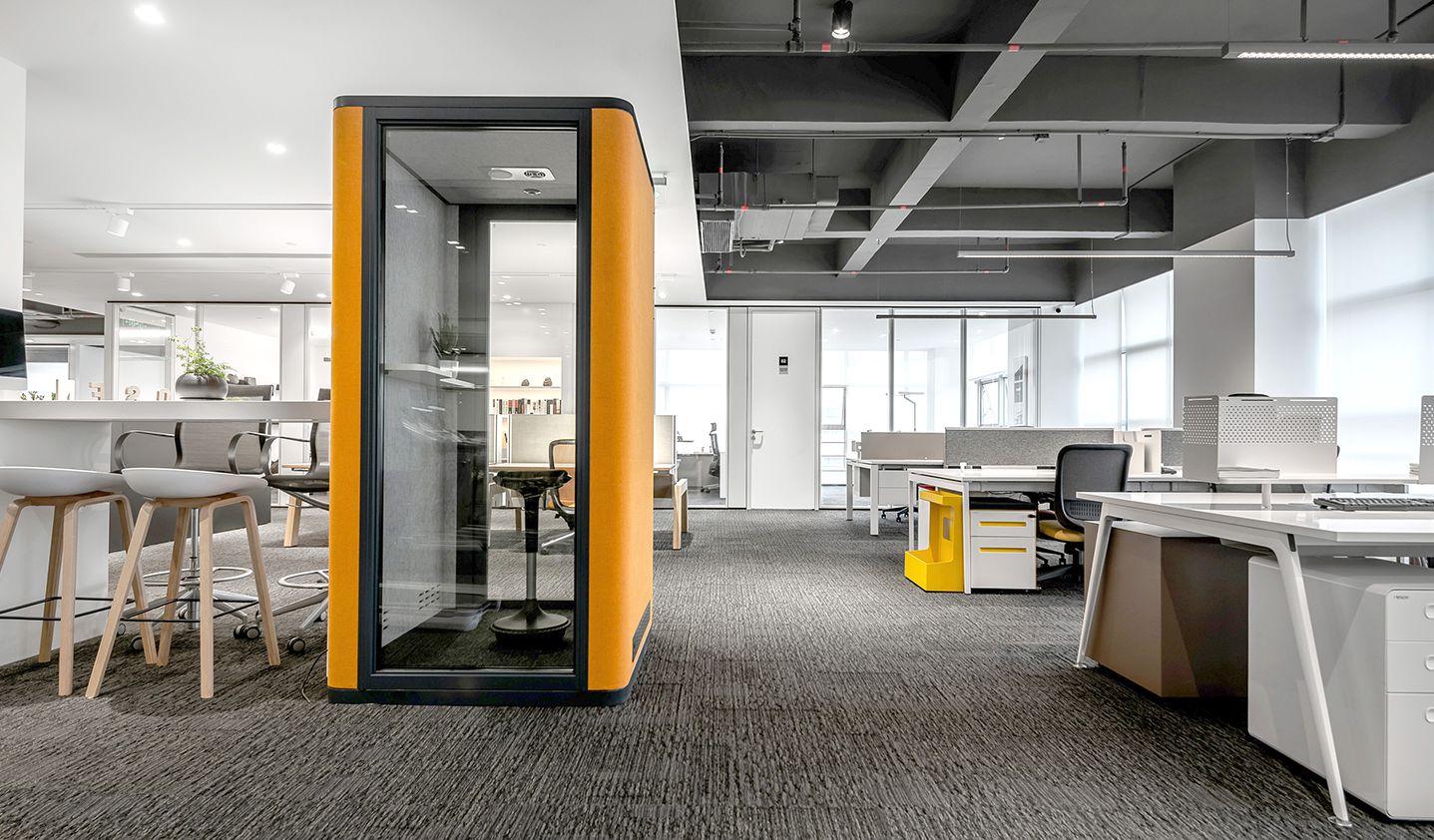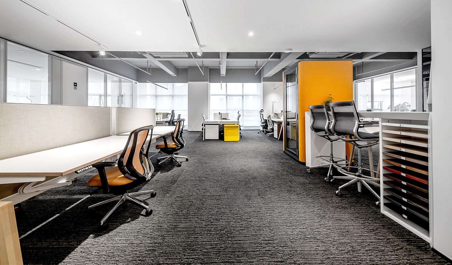 用色彩的语言来来表达空间的情感,鲜艳明亮的橘色打造视觉盛宴,激发对工作的热情同时表达了设计师对单一空间的色彩点缀的点睛之笔......