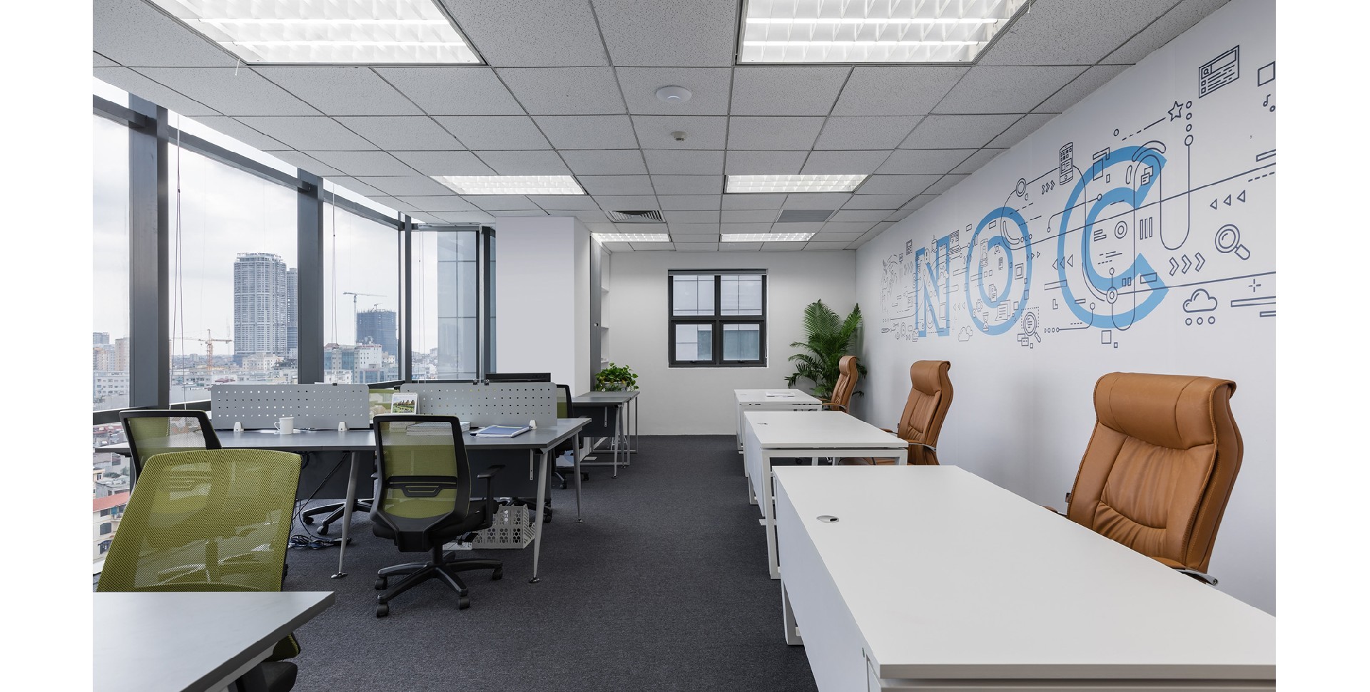 The design is simple and elegant, showcasing the professionalism and modernity of modern office environments through the clever combination of colors and decorative elements. Emphasize the perfect combination...