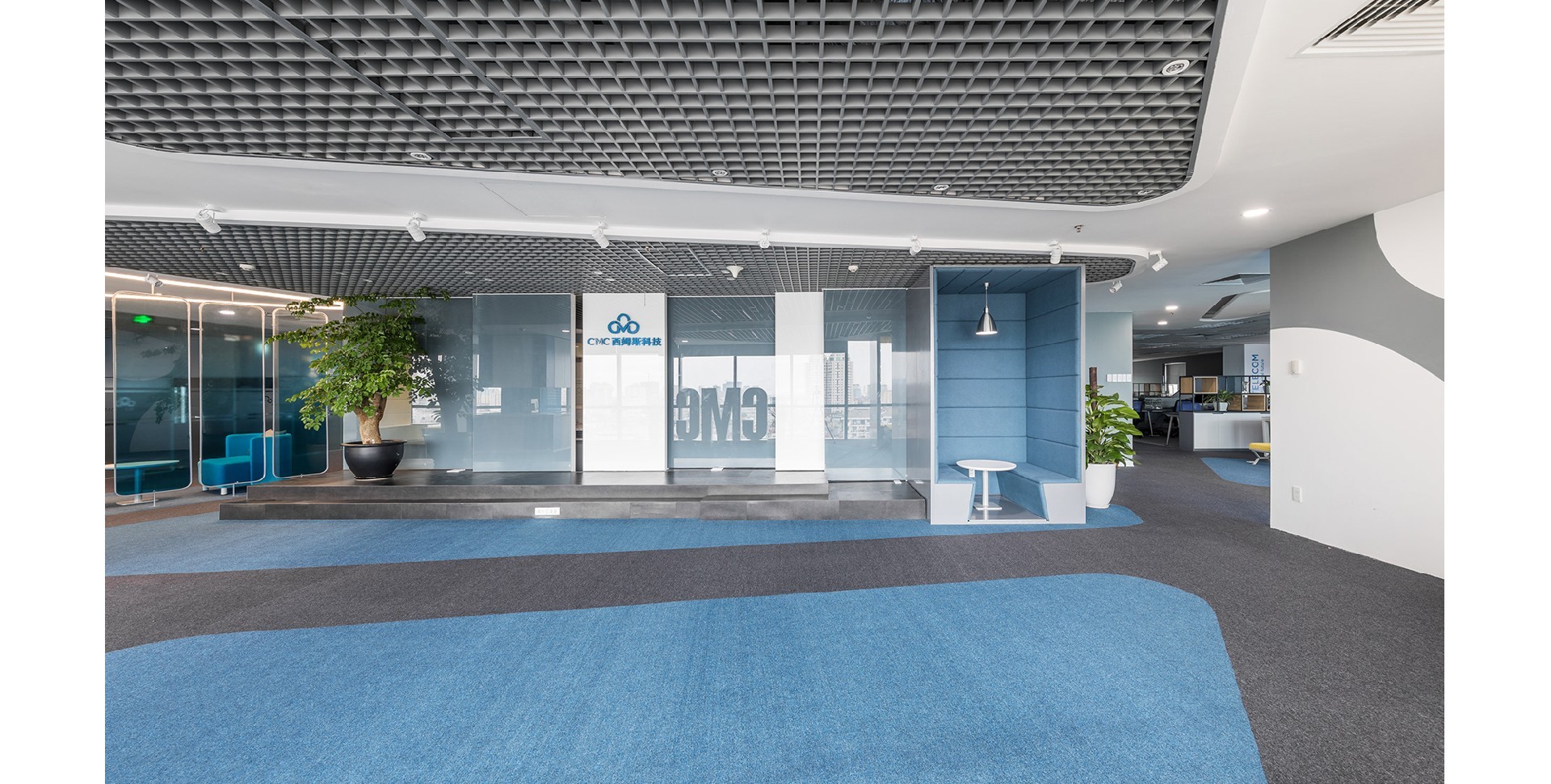 设计简洁大方,通过色彩与装饰元素的巧妙搭配,展现了现代办公环境的专业性和现代感。强调品牌展示与空间功能性的完美结合,同时注重自然光线的引入和视野的开阔性。追求空间的最大化利用与视觉的通透感,注重细节的处理和氛围的营造。