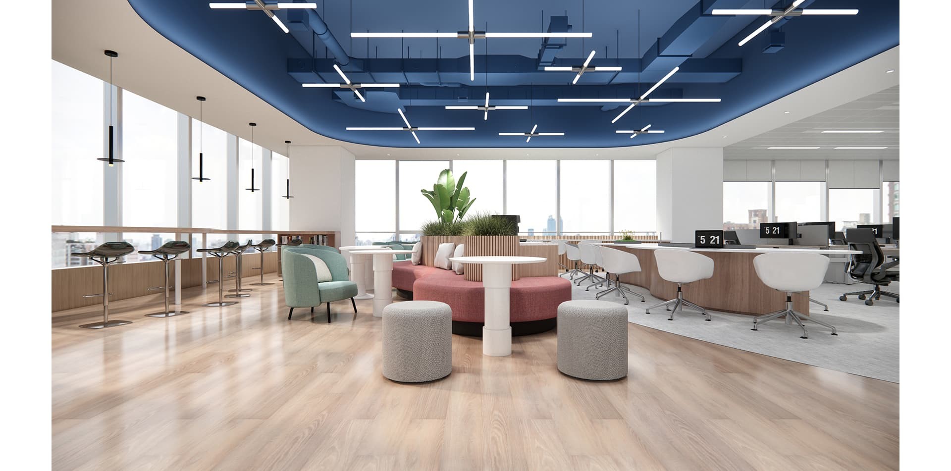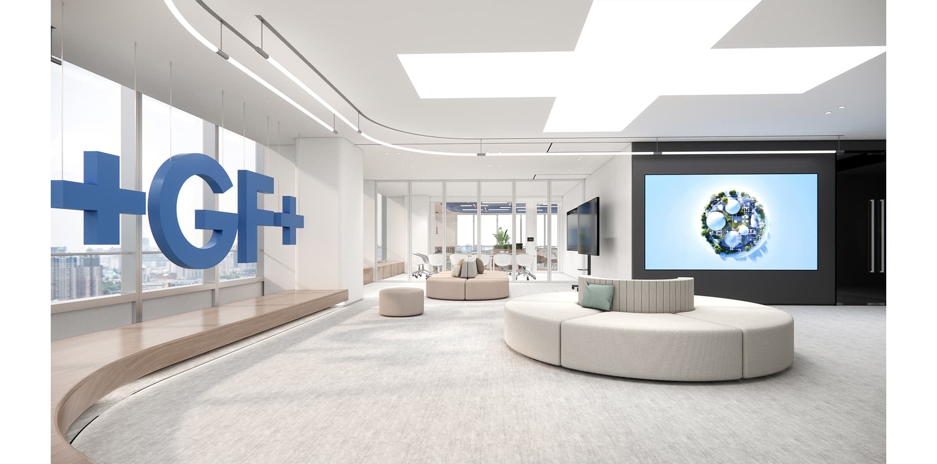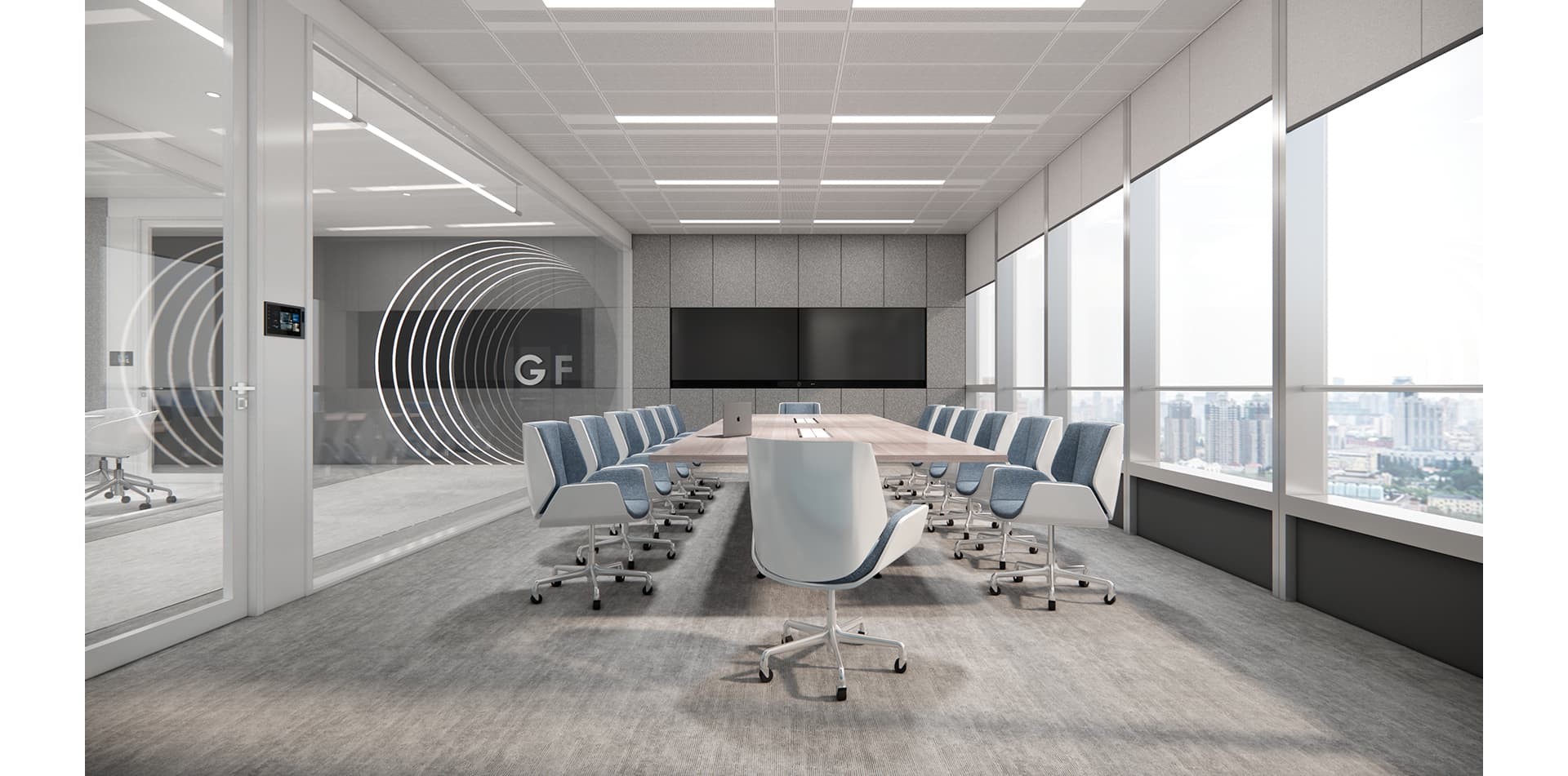 上海乔治费歇尔办公室装修设计以智能灵动、多元融合为核心,开放式布局搭配智能系统,营造专业与人文兼具的现代办公空间。