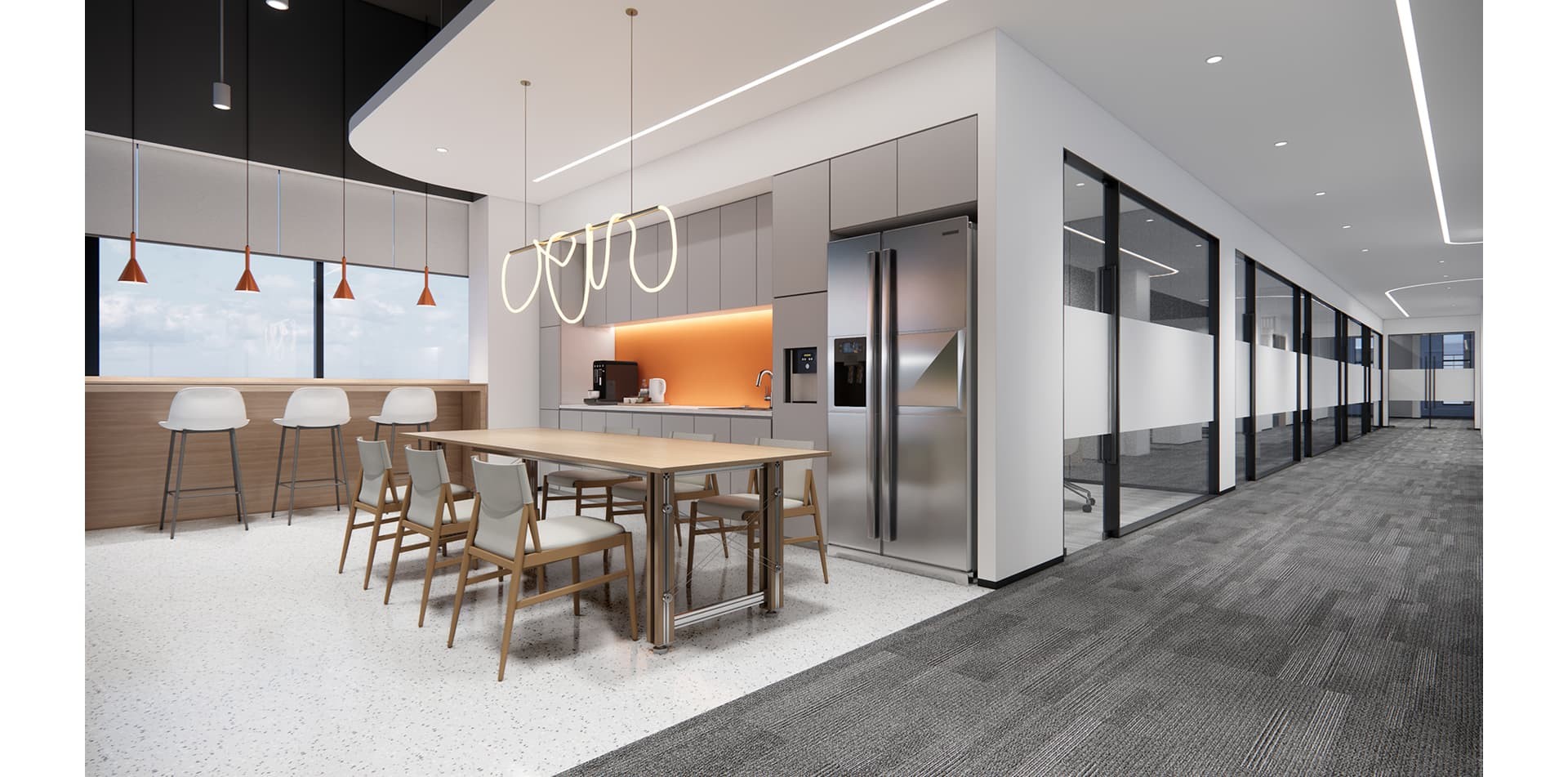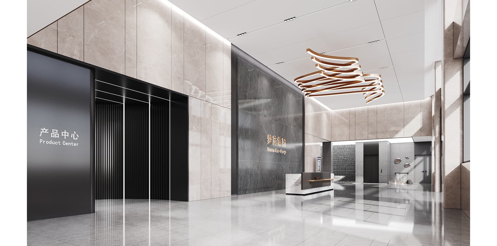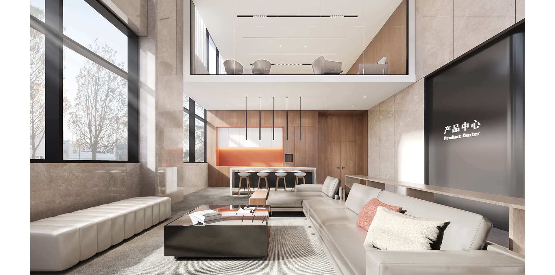 上海梦茂包装办公室装修设计以简约凝练为空间基调,融合品牌元素与企业文化,通过开放灵动的布局与艺术装置式产品展示,打造兼具品牌气质与互动性的办公空间。
