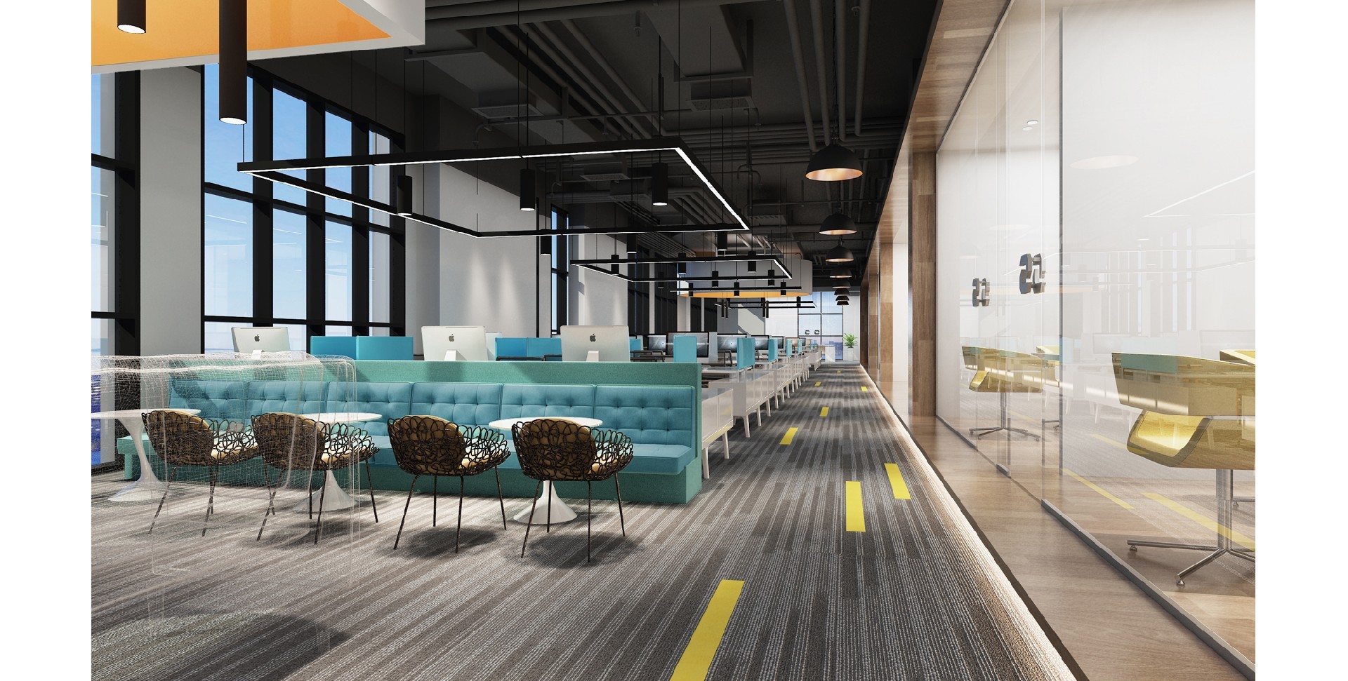 艾斯德办公室设计主要以自然元素的融入和现代设计的结合。通过色彩的巧妙搭配和空间的合理布局,营造一个激发创造力和提升工作效率的办公环境。